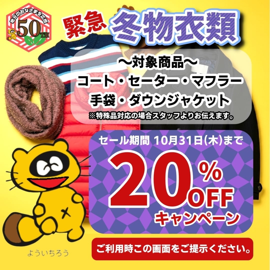●対象商品:コート、セーター、マフラー、手袋、ダウンジャケットなどの冬物衣類